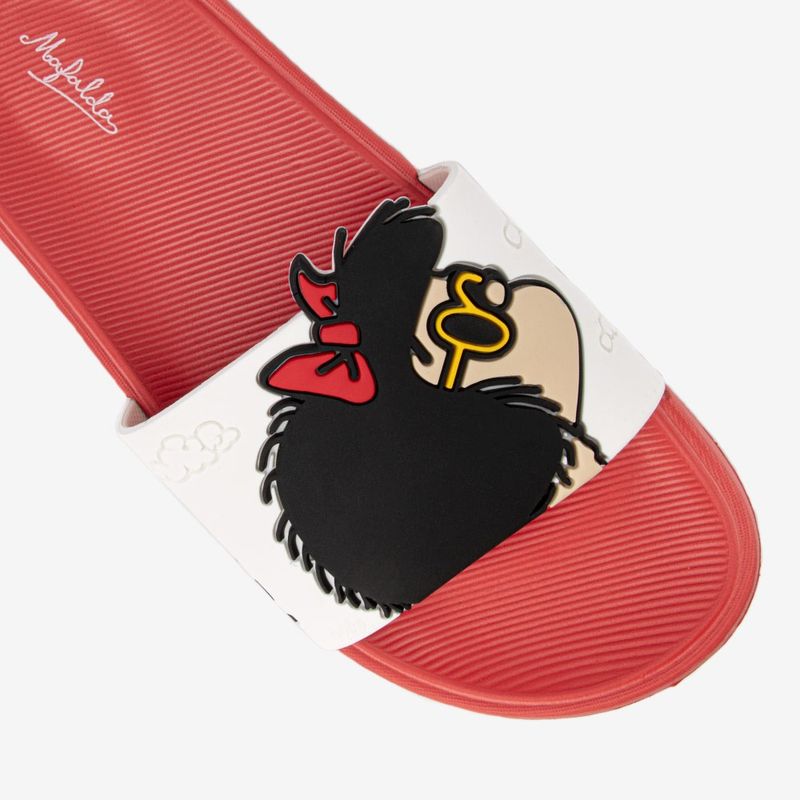 Atributo especial | Esta sandalia casual de la línea PLASTISOL ADULTO es la opción perfecta para el verano, combinando comodidad extrema y un diseño divertido. Confeccionada con una banda de RUBBER color blanco que presenta el personaje de la Vaca Mafalda en alta definición, se asienta sobre una planta ULTRA LIVIANA color ROJO. Es ideal para la piscina, la playa o el uso diario. |