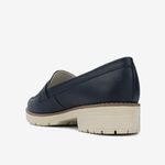 Atributo especial | Mocasín para dama en tono Azul marino es la opción ideal para iluminar tus pasos con elegancia y confort. Confeccionado en CUERO GRASO de alta calidad, ofrece una textura suave y un calce transpirable que envuelve el pie con delicadeza. Su diseño limpio y minimalista lo convierte en un básico indispensable para transitar de la oficina a una salida casual con total facilidad.