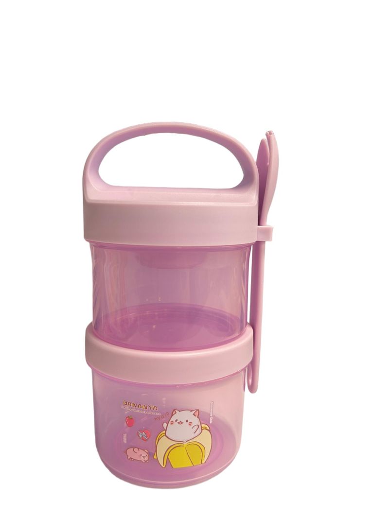Atributo especial | ¡Organiza tus meriendas con toda la ternura de Bananya en este práctico contenedor de alimentos! Con unas dimensiones promedio de 17 x 10 x 10 cm, su diseño de niveles apilables permite llevar tus snacks favoritos de forma ordenada y con un estilo encantador para el colegio. Es el accesorio ideal para las pequeñas fans que buscan funcionalidad y un diseño adorable en cada comida.