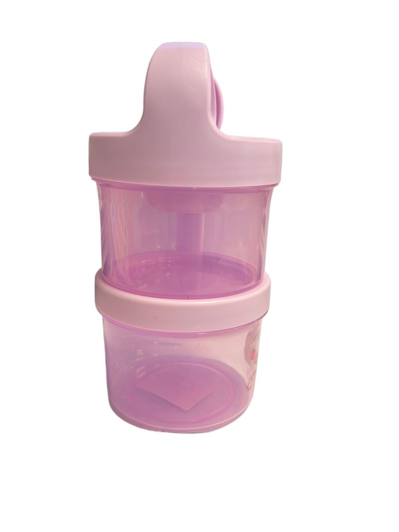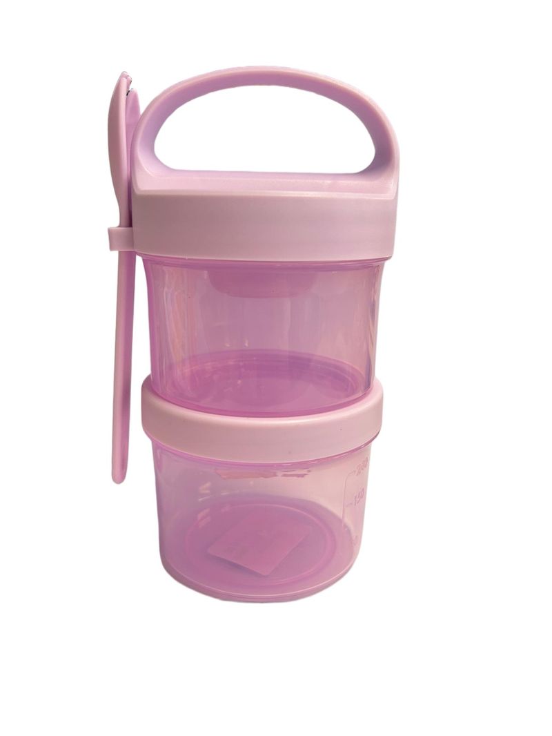 - Diseño de Doble Nivel: Estructura de dos compartimentos circulares apilables en color lila traslúcido, que permiten separar diferentes tipos de alimentos manteniendo su frescura.