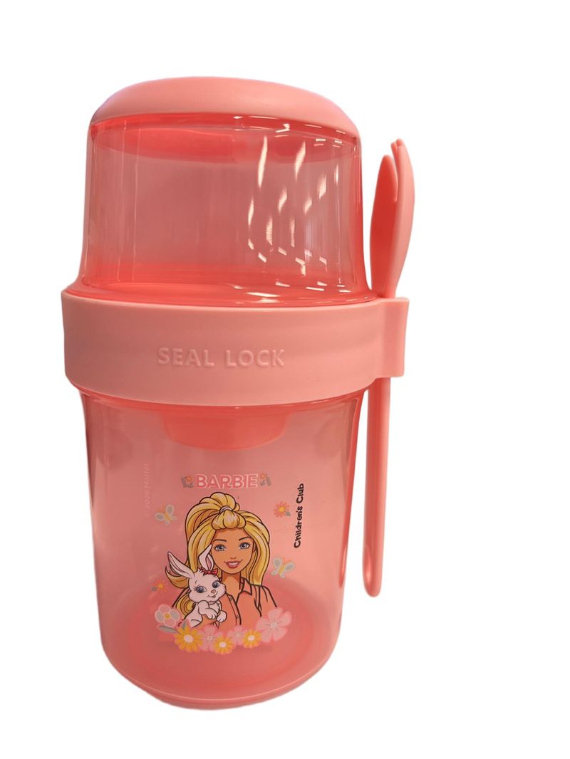 Este contenedor versátil de la colección Barbie Spring Bunny es la solución ideal para organizar una merienda completa de forma práctica y segura. Su diseño de compartimentos apilables con una capacidad dual de 310 ml y 560 ml permite separar alimentos sólidos de líquidos o snacks, manteniendo la frescura gracias a su fabricación en PP y silicona. Con unas dimensiones de 10.5 x 17.5 cm, es el compañero perfecto para llevar una nutrición balanceada al colegio con todo el estilo de Barbie.