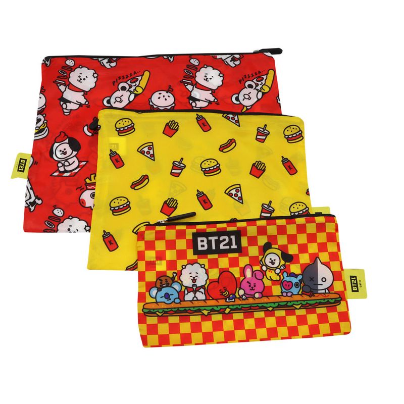 Atributo especial | ¡Organización con toda la energía de tus personajes favoritos! Este set de 3 estuches de BT21 es el complemento perfecto para que los fans de la línea de Line Friends mantengan sus útiles o accesorios totalmente ordenados con un estilo único y divertido.