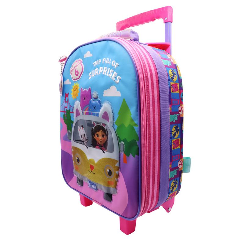 Atributo especial | ¡Embárcate en un viaje lleno de sorpresas! Esta maleta con ruedas de Gabby's Dollhouse es el accesorio perfecto para que las pequeñas aventureras lleven su mundo de diversión al colegio con total comodidad. Su diseño único y materiales de primera calidad aseguran el máximo cuidado de sus útiles durante toda la jornada estudiantil.