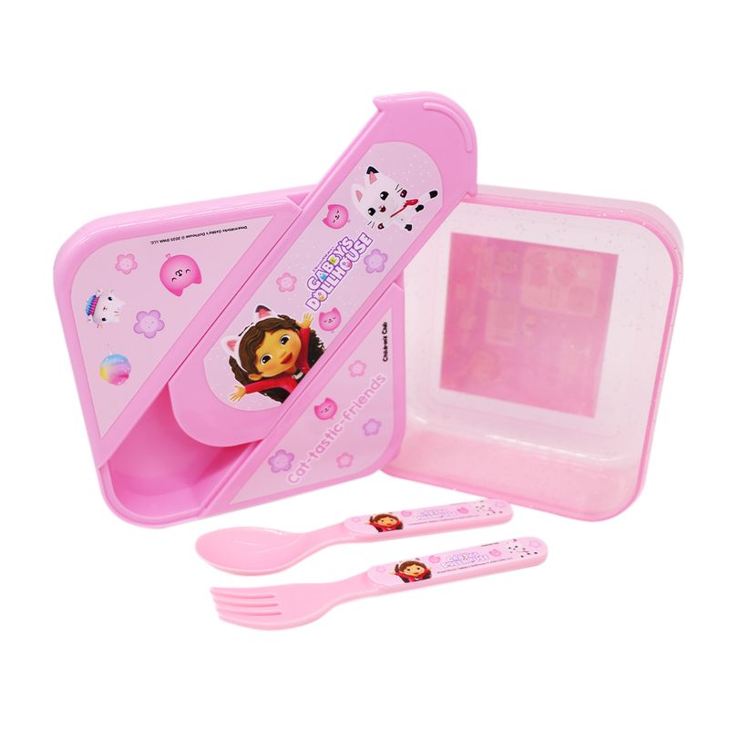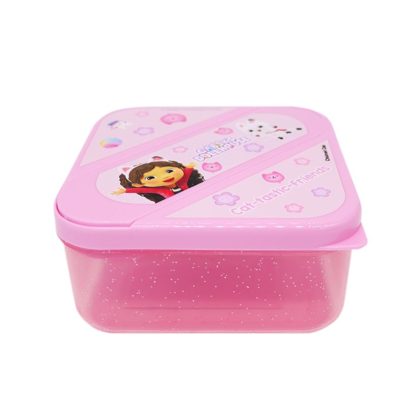 Atributo especial | ¡Prepárate para un almuerzo lleno de magia y miau-tásticas sorpresas! Este táper de Gabby's Dollhouse con divisiones y cubiertos es el aliado perfecto para que las pequeñas disfruten de sus comidas favoritas con mucha diversión. Su diseño funcional y colorido está pensado para que cada recreo en el colegio o el nido sea una experiencia organizada y llena de alegría durante todo el año académico.