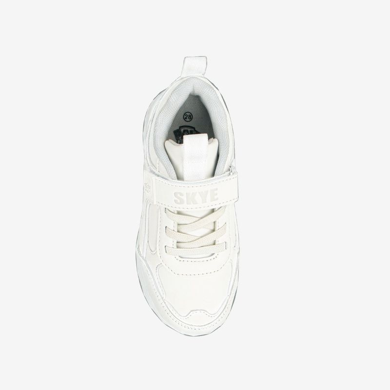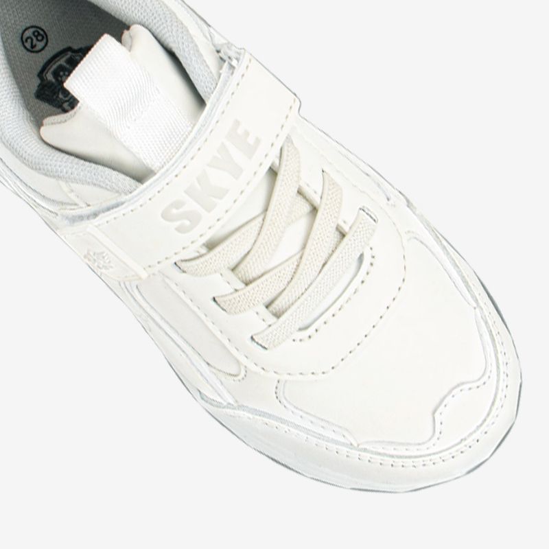 - Suela ligera y flexible: Su planta de color blanco está diseñada para ofrecer una excelente amortiguación, permitiendo que corran y jueguen con total seguridad durante el recreo.