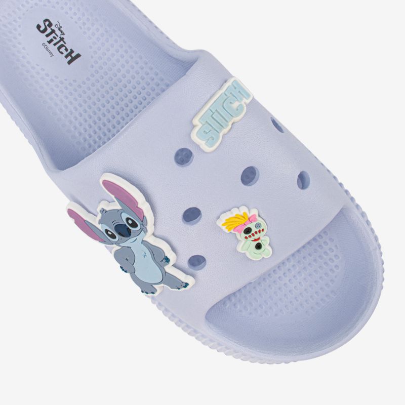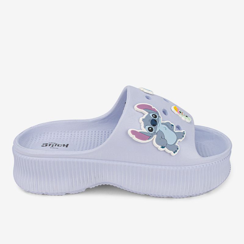 Atributo especial | ¡Lleva tu estilo veraniego a un nuevo nivel con la combinación perfecta de frescura y altura! Esta sandalia playera de plataforma, de la línea SANDALIA PLASTISOL ADULTO, es el calzado casual perfecto para un look veraniego con altura. Su diseño en color LILA, suave y en tendencia, se complementa con el divertido PIN DE RUBBER de STITCH, aportando un toque de diversión y personalidad única a tus pasos durante todo el año.